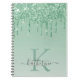 Girly Mint Green Glitter Drips Monogrammed Notebook