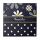 A tile with a girly retro mod flower pattern on the top with white daisies with yellow centres against a navy blue background, and a trendy blue and white polka dot pattern on the bottom. Personalise by adding your name. Perfect present for a stylish girly girl.