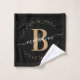 Girly, elegant minimalist, trendy, modern, black and gold monogram initial name script custom personalised monogrammed Wash Cloth. Featuring a monogram initial and a girly name script in a hand lettered calligraphy swash tail font and dotted circle frame around your monogram. Perfect feminine gift for sister, birthday, mother, girlfriend,wedding, bridal shower, sweet 16 birthday party, or anyone who loves pretty girly modern style.