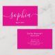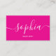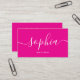 Minimalist business card features big handwritten calligraphy for your name. A feminine look perfect for many professions. Light pink.