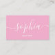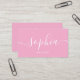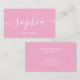 Minimalist business card features big handwritten calligraphy for your name. A feminine look perfect for many professions. Light pink.