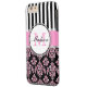 Girly Modern Pink Glitter Damask Personalised Case-Mate iPhone Case