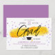Celebrate your daughter's elementary school graduation with this chic invitation! Featuring a trendy graduate cap design against a vibrant yellow-orange watercolor backdrop adorned with charming pink stars. The reverse side boasts a soft, pastel pink-purple tone. Completely customisable, tailor the text to complement your event. Invite friends and family to join in the celebration and honour graduation in style! Perfect for kids or teenagers, this adorable invitation sets the tone for a memorable gathering honouring a bright future. Order now to mark this milestone achievement and make your daughter's graduation party unforgettable!
