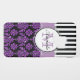 Modern girly purple glitter (printed) and black damask with black and white stripes pattern you can personalise with your monogram Initial and your name. Damask Gallery© Other colours and styles available in our shop at www.zazzle.com/DamaskGallery*. A cute design for her, the fashionista who wants a cute cool stylish monogrammed design.