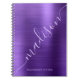 Modern, girly purple metallic monogram script signature custom personalised spiral notebook. This feminine design featuring a faux deep indigo purple brushed metallic background, a hand-writing signature name or monogram text template. The name is written in a huge beautiful swirly hand lettered swash tail font style. Great feminine gift for girls and woman for school, home office, business, birthday, wedding, bridal shower, sweet 16 birthday party, or anyone who loves pretty girly modern style.
