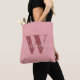 Customisable Monogram and Name written over the monogram in shades of pink and blush. The monogram is a big letter in dark pink red and the name is written in handwriting letters with very pale pink colour.