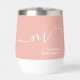 Girly Monogram Calligraphy Coral Blush Pink Bride or Bridesmaid Thermal Wine Tumbler. Easy to customise feminine and elegant script typography monogram. Perfect monogrammed name gift idea!