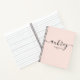 Minimalist notebook features name in handwriting font.