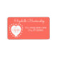 This address label features a white heart surrounded by dots for the initial letter monogram and name on the left side. The coral background sets off the white name and address information along the top and right. Personalise all the text fields, remove text, or click customise to select a typeface style, size, and colour you prefer.