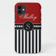 Girly Monogram Name Red Black Stripes Case-Mate iPhone Case