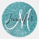 Girly Monogrammed Faux Teal Glitter Classic Round Sticker