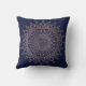 Girly Navy Blue and Rose Gold Mandala Boho Cushion