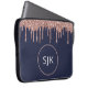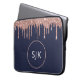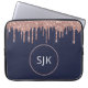 Girly Navy Blue Rose Gold Glitter Drips Monogram Laptop Sleeve