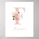 Girly Pale Rose Gold Glitter Floral Monogram F Poster