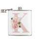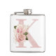 Girly Pale Rose Gold Glitter Floral Monogram K Hip Flask