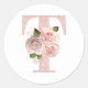 Girly Pale Rose Gold Glitter Floral T Monogram Classic Round Sticker
