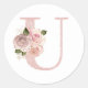 Girly Pale Rose Gold Glitter Floral U Monogram Classic Round Sticker