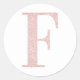 Girly Pale Rose Gold Glitter Monogram F Classic Round Sticker