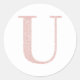 Girly Pale Rose Gold Glitter Monogram U Classic Round Sticker