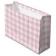 Pastel girl baby shower pink classic gingham or buffalo plaid pattern large size gift bag.