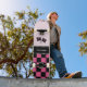 Girly Pink and Black Chequered Racing Flags and Na Skateboard