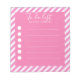Keep track of all your important tasks with this stylish personalised notepad. The design features pink and white diagonal striped pattern as background plus blank space with six check circles and lines. The text is fully customisable.