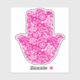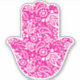 Lovely colourful girly pink and white sticker, in the shape of the symbolic Hand of Fatima. The sticker features a boho paisley style pattern.