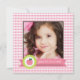 Lovely girly invitation for your princess. It features a sweet light pink and white gingham background and a place to upload your daughter's photo. The main detail is a pink label written "you're invited" in white and the illustration of a pink kawaii apple on a lime green tag. Enter the party information on the back. Check out other products of this theme: