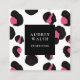 Modern, girly animal print themed networking card featuring digital image of leopard print in white, black and pink. Black stripe overlay. Great for beauty, fashion , entertainment and event professionals.
