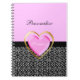 A girly black and white giraffe print notebook with a cute printed pink and gold heart that says princess. Personalise by adding your name. Perfect for the stylish and trendy teen girl.