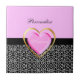 A girly black and white giraffe print tile with a cute printed pink and gold heart that says princess. Personalise by adding your name. Perfect for the stylish and trendy teen girl.