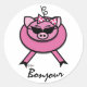 A fun cute Girly Pink Pig sticker that says "Bonjour."
