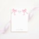 Girly bridal shower thank you card featuring light pink bows and elegant fonts in which all your personalised information is written. You can find matching products from this collection in our store.