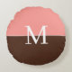 Girly pink &brown monogram round cushion