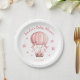 Girly Pink Bunny In Balloon and Stars Paper Plate
