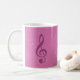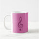 A simple music design featuring a large g-clef in rouge pink on a pink background with a subtle background of musical notes. The raised satin look of the clef is a printed effect. Perfect for the musician, music teacher, music student or music lover.