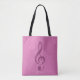 A simple music design featuring a large g-clef in rouge pink on a pink background with a subtle background of musical notes. The raised satin look of the clef is a printed effect. Perfect for the musician, music teacher, music student or music lover.