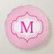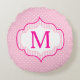 Girly Pink Custom Monogram Polka Dot Pattern Round Cushion