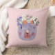 Girly pink cute wild animal with flowers nursery throw pillow for her. Beautiful girly little bear with colourful flowers on it's head is beautiful and nice to give like a birthday present. Pink background girly decoratvie pillow for girl bedroom.