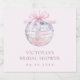 Girly bridal shower sparkling wine label featuring a shiny disco ball with a light pink bow and elegant fonts in which all your personalised information is written. You can find matching products from this collection in our store.