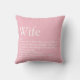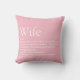 Girly Pink Fun Typographic Modern Wife Definition Cushion