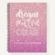This personalised girly 8.5 x 11 sketchbook has white typography on a pink background. The words, "DREAM,IMAGINE,CREATE" in a hand drawn font personalised with your name below. Customise the sketchbook with the name of your choice to make someone feel extra special. Makes a fun gift for birthdays or for Christmas. Comes in a variety of colours. Designed for you by Blackberry Boulevard.