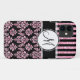 Girly, Pink Glitter, Black Damask Your Monogram Case-Mate iPhone Case