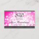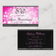 Girly Pink Glitter Black Silver Border Monogram Business Card