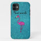 Girly Pink glitter flamingo turquoise glitter Case-Mate iPhone Case
