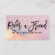 This is the perfect Refer a Friend Discount Card for a trendy, stylish, and modern business. This design features chic, girly, and pretty black brushstroke typography on a glamourous and girly faux printed pink glitter with pink, peach, blue, and purple iridescent ombre gradient background. These cards will add that personal and professional touch to your business and career advertisement.