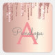 Girly Pink Glitter Monogrammed Rose Gold Drips Square Sticker