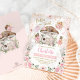 This whimsical design features a sweet illustration of magical forest fairies, a cute mushroom house and elegant blush & pink watercolor flowers.