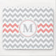 Girly Pink Grey Chevron Pattern with Monogram Mouse Pad