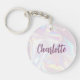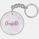 Girly Pink Holograph Design Custom Name Keychain. Personalise this cute keychain with your own name to make it your own or give as a gift. Perfect for back to School or sweet 16 birthday gift.